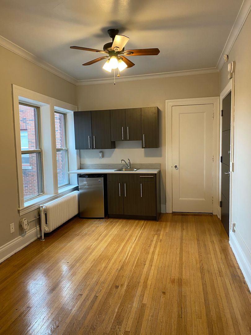 Make yourself at home in your newly renovated historic downtown apartment! Refinished hardwood flooring, stainless steel mini fridge, new light fixtures throughout, high ceilings, and so much more!