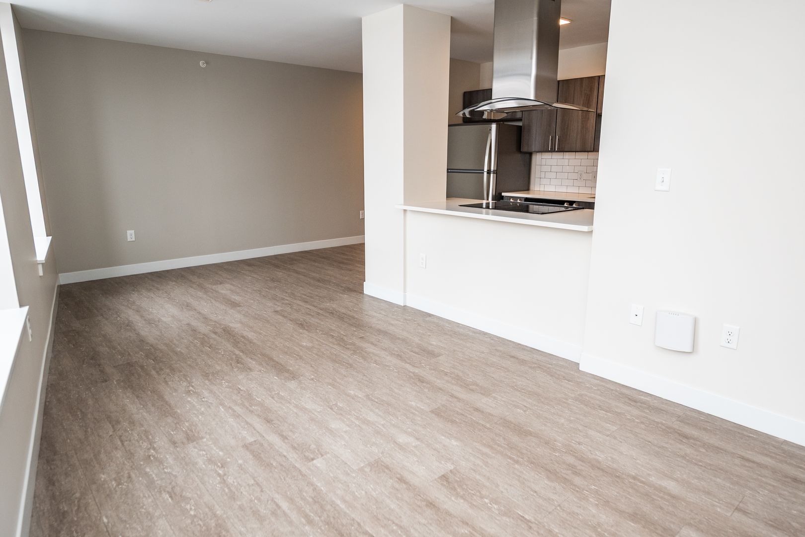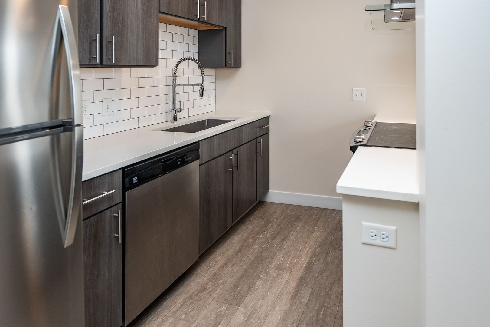 This 944 sq. ft. two-bedroom, one-bath apartment at The Terminal Building offers a spacious layout perfect for comfortable city living. The kitchen is equipped with stainless-steel appliances, a dishwasher, an island for extra prep and seating space, a garbage disposal, and contemporary window coverings for style and privacy. With its open design and quality finishes, this home is ideal for both relaxing and entertaining.