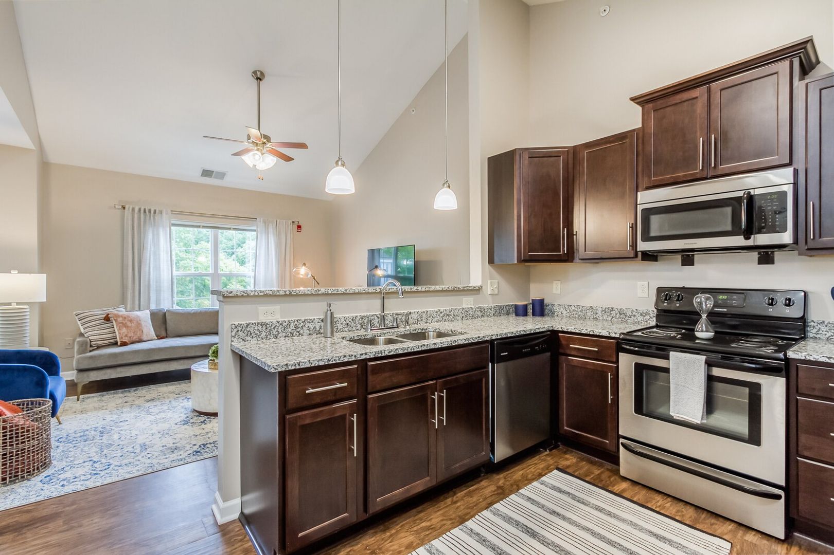 Make yourself at home in this beautiful, contemporary-designed two-bedroom, two-bathroom apartment home! Recently built in 2017, this unit features luxury vinyl tile flooring, cathedral ceilings, granite countertops, in-unit washer and dryer, spacious walk-in closet, master bathroom with his and hers vanities, and personal patio/balcony. The subtle color palettes and use of natural materials create a living environment that is stylish, comfortable, and complementary to any decor!