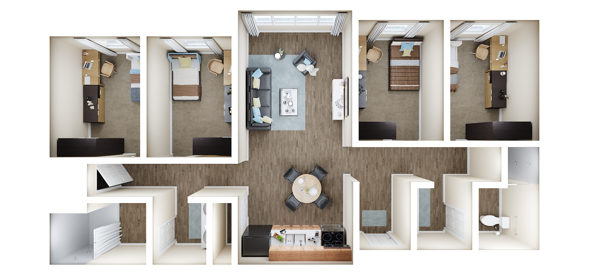 Make yourself at home in this 4 BR, 2 BA apartment! Perfect for the student lifestyle, this unit features a fully-equipped kitchen, including a microwave and dishwasher, luxury vinyl tile flooring, and two full bathrooms with double vanities. Our apartments are just minutes from campus, with individual leasing and a roommate-matching program to make for comfortable living during your career as a student. Pricing is per bedroom.