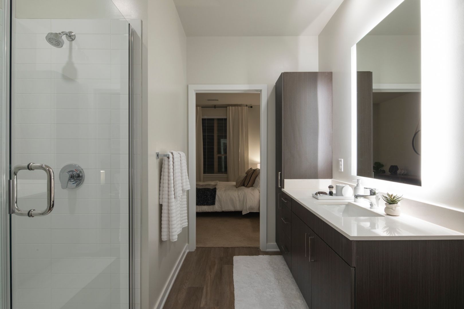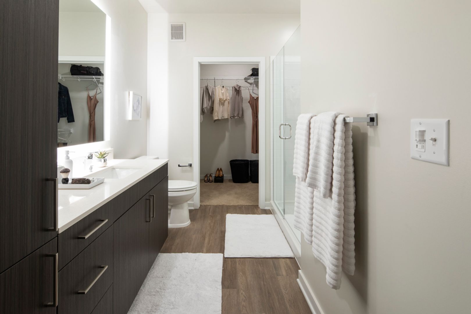 Axiom is a vibrant apartment community in Clarksburg, MD, nestled in the beautiful Cabin Branch area. Offering studio, one, two, and three-bedroom homes, Axiom combines quality materials and thoughtful design for an unparalleled renting experience. Enjoy modern interiors with quartz countertops, accent lighting, and high ceilings. Our community features state-of-the-art fitness centers, outdoor grill stations, and a resort-style pool. Conveniently located near major highways and local attractions, Axiom provides easy access to everything you need. Discover contemporary living in a natural setting at Axiom.