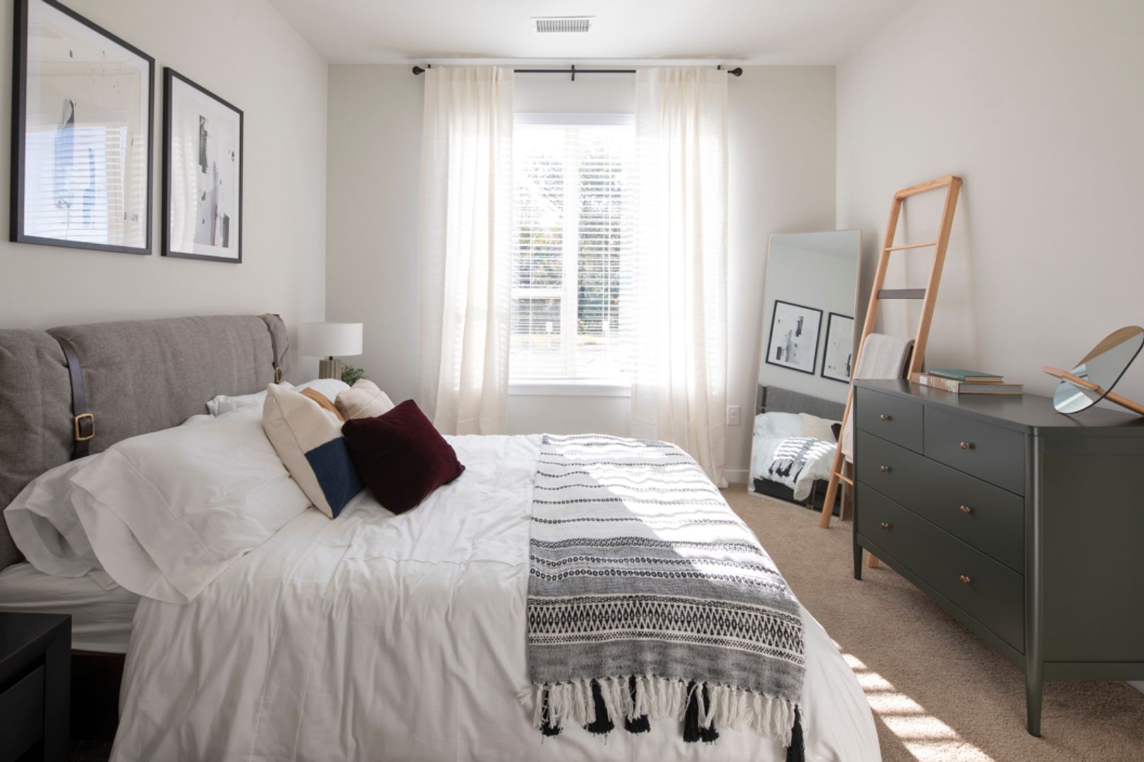 Make yourself at home in this beautiful & thoughtfully-designed apartment with over 1100 square feet of modern luxury. This unit features 2 carpeted bedrooms, 2 modern bathrooms, an in-unit washer & dryer, breakfast bar, in-wall USB ports, stainless steel appliances, quartz countertops & more!