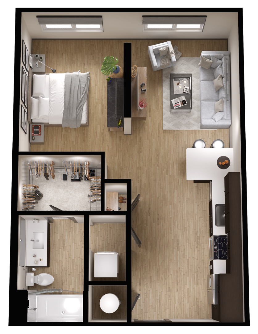 Make yourself at home in this beautiful & thoughtfully-designed apartment filled with modern luxuries. This unit features a carpeted bedroom & modern bathroom,an in-unit washer & dryer, breakfast bar, in-wall USB ports, stainless steel appliances, quartz countertops & more!