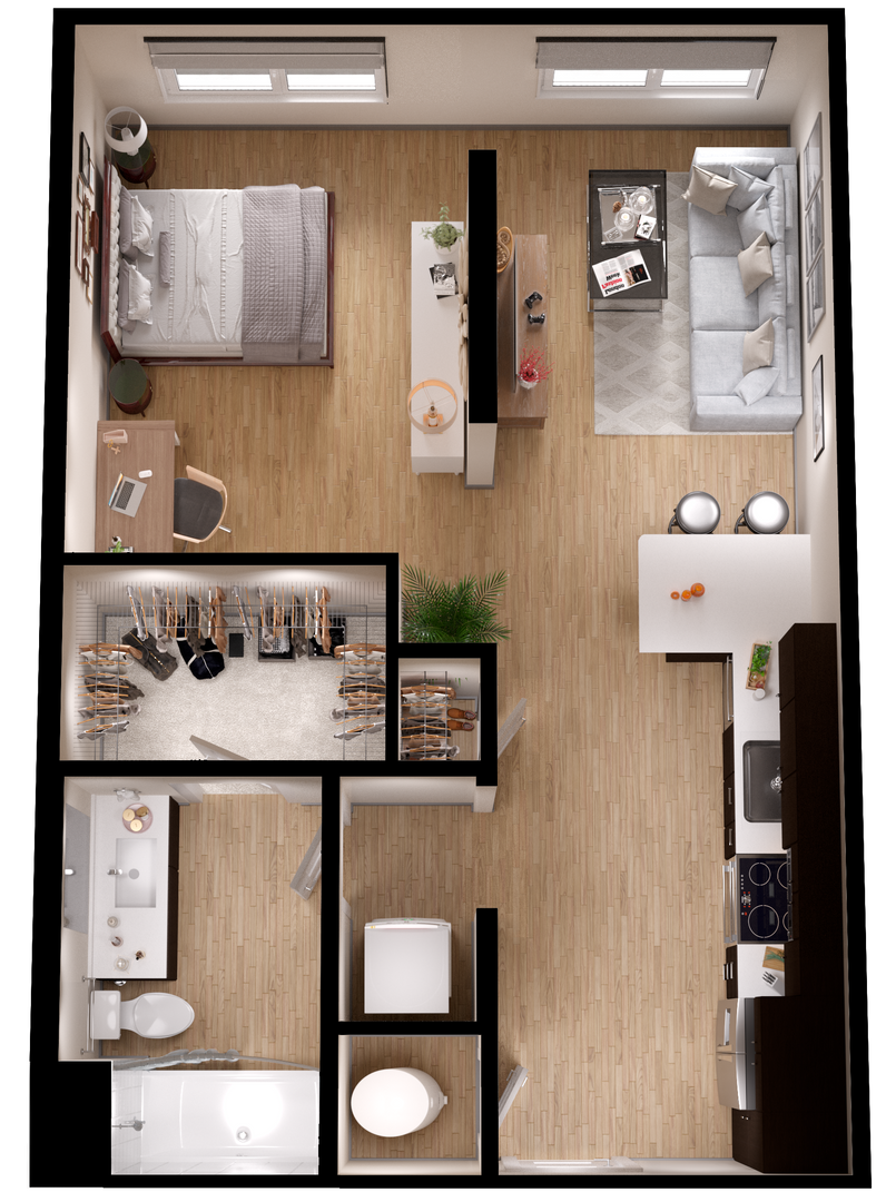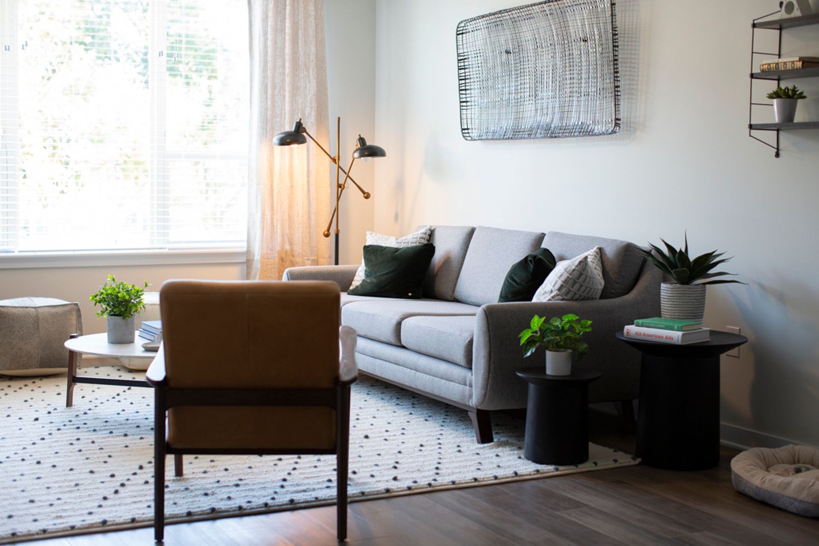 Make yourself at home in this beautiful & thoughtfully-designed apartment filled with modern luxuries. This unit features a carpeted bedroom & modern bathroom, an in-unit washer & dryer, breakfast bar, in-wall USB ports, stainless steel appliances, quartz countertops & more!