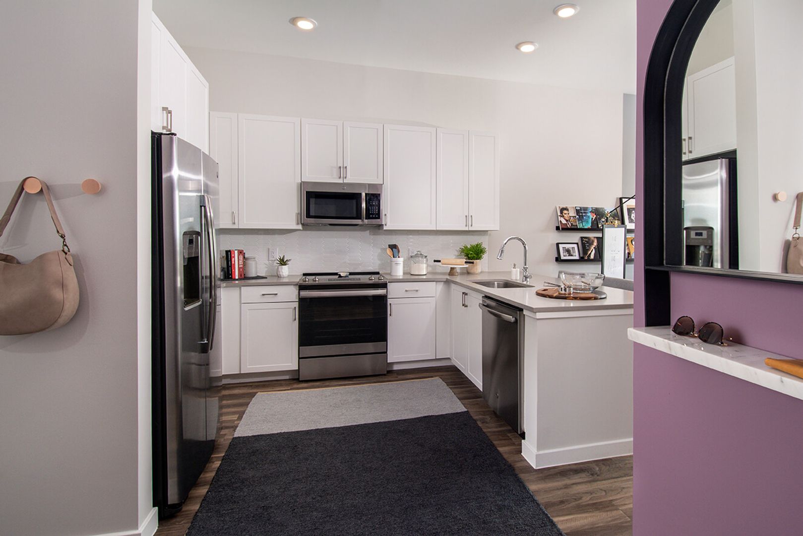 Our property features gorgeous community spaces for you to relax, work or play in. Lounge by our resort-style pool or host a game night with friends in the Virtual Sports Center. Brainstorm in an inspiring environment through our coworking space or learn a new cooking technique in the Experience kitchen. Our community also features a Zen courtyard, two fitness centers, electric vehicle charging stations & more.