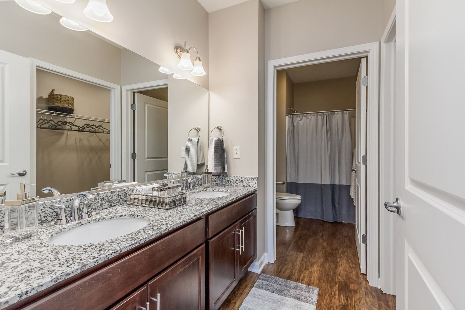 Make yourself at home in this beautiful, contemporary-designed two-bedroom, two-bathroom apartment home! Recently built in 2017, this unit features luxury vinyl tile flooring, granite countertops, kitchen island with breakfast bar, in-unit washer and dryer, master bathroom with his and hers vanities, large walk-in master closet and personal patio/balcony. The subtle color palettes and use of natural materials create a living environment that is stylish, comfortable, and complementary to any decor!